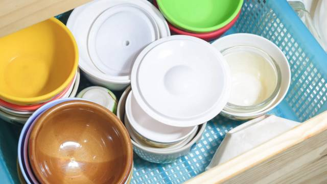 这种餐具平常储存的时候,注意放在避光通风的地方,可以减缓老化的速度。