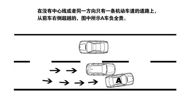11.在没有中心线或同一方向只有一条机动车道的道路上,从前车右侧超越的,超车方负全责。