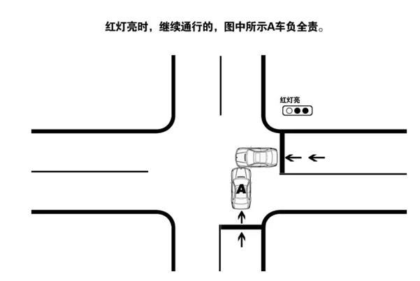 18.红灯亮时,继续通行的,需负全责。