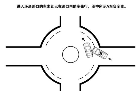 6.进入环形路口的车未让已在路口内的车先行,进入车负全责。
