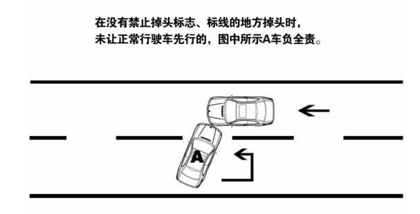 14.在没有禁止掉头标志、标线的地方掉头的,未让正常行驶车先行的,掉头车负全责。