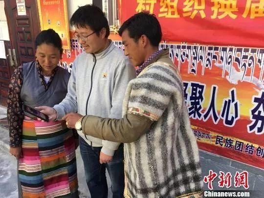 “双十一”网购节,西藏自治区文化厅驻村干部通过移动终端支付帮助边境地区夏尔巴群众网购棉被。 胡立 摄