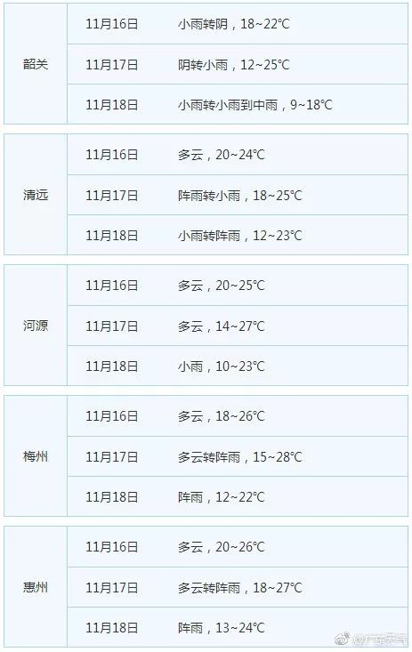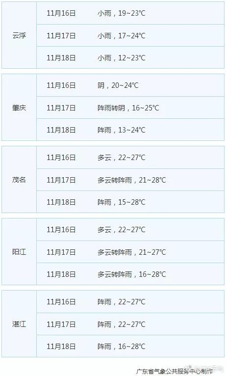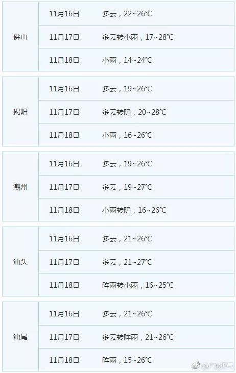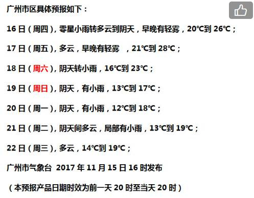 冷空气已在路上,广东省21个地市未来三天天气如何?(来源:广东省各市气象台 预报时效起始时间:2017-11-15 19时)