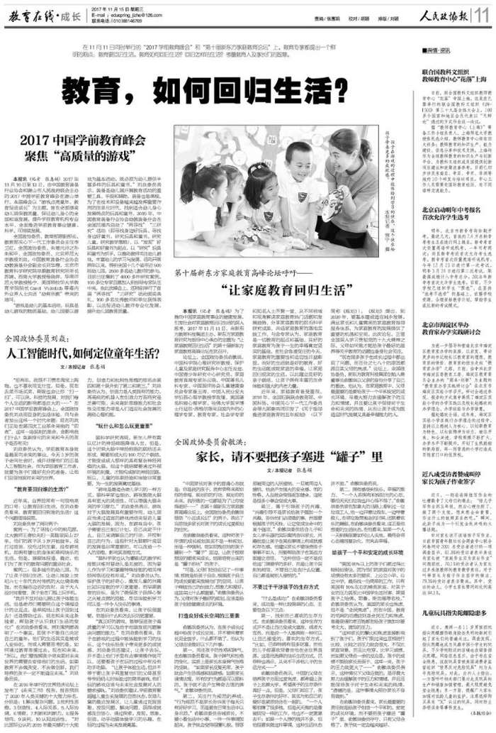 近年来,业界经常有一句很响亮的口号:让教育回归生活。在刘焱委员看来,教育要回归到谁的生活?这个问题值得深思。