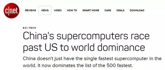 科技网站CNET也发表题为《中国超级计算机超过美国,取得全球领先地位》的文章。