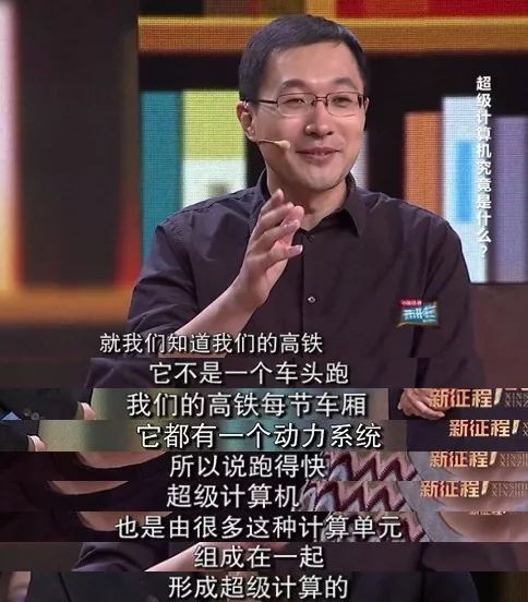 我们知道高铁,高铁不是一个车头在跑,高铁每节车厢都有一个动力系统,都有一个发动机,大家一起跑,所以跑得快。超级计算机也是由很多计算单元组成在一起,形成超级计算机。