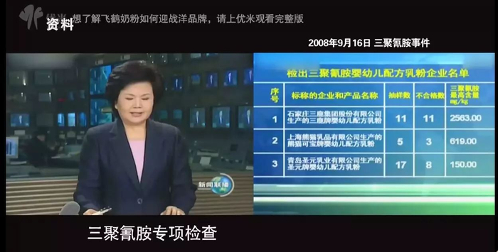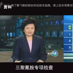 中央电视台新闻联播口播:“87家尚未检出三聚氰胺的婴幼儿配方乳粉企业是:黑龙江飞鹤乳业有限公司。“