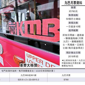 香港拟推780港元巴士月票 每日十程任搭九巴路线