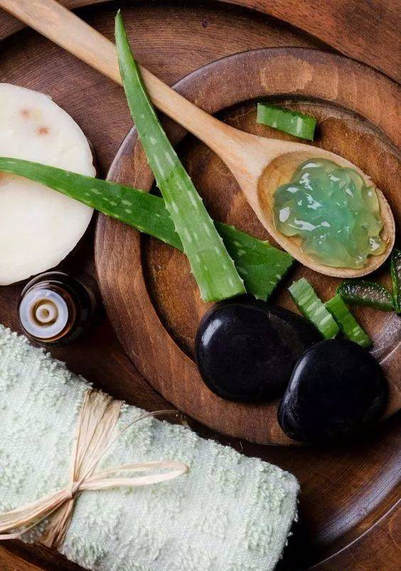 直接用切开的芦荟析出的芦荟胶涂抹在皮肤上,十分钟后洗净,长期坚持,补水效果显著。