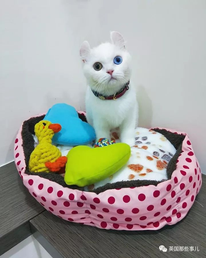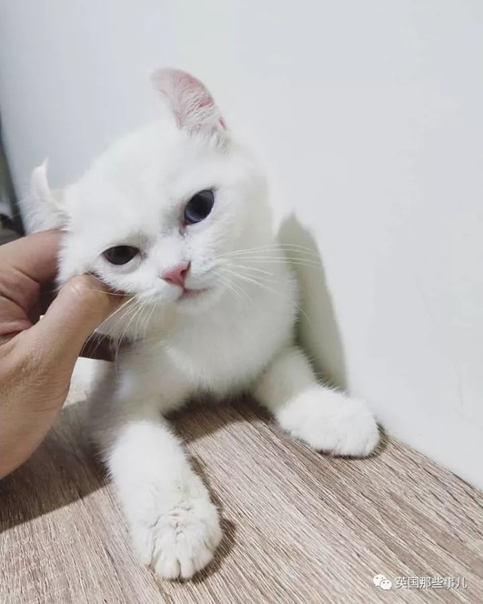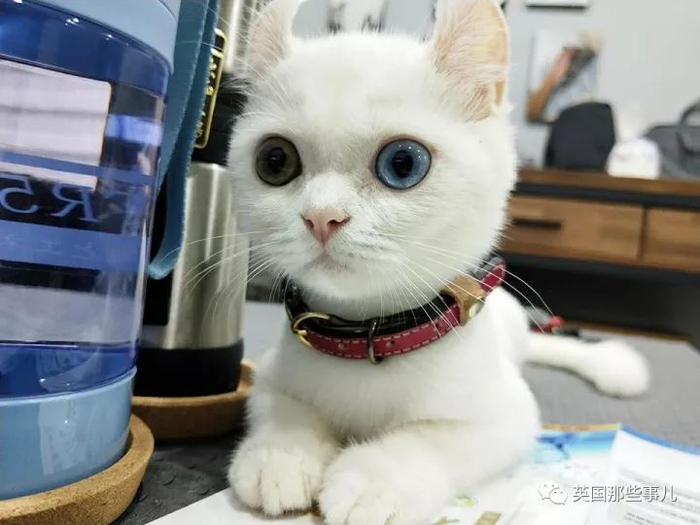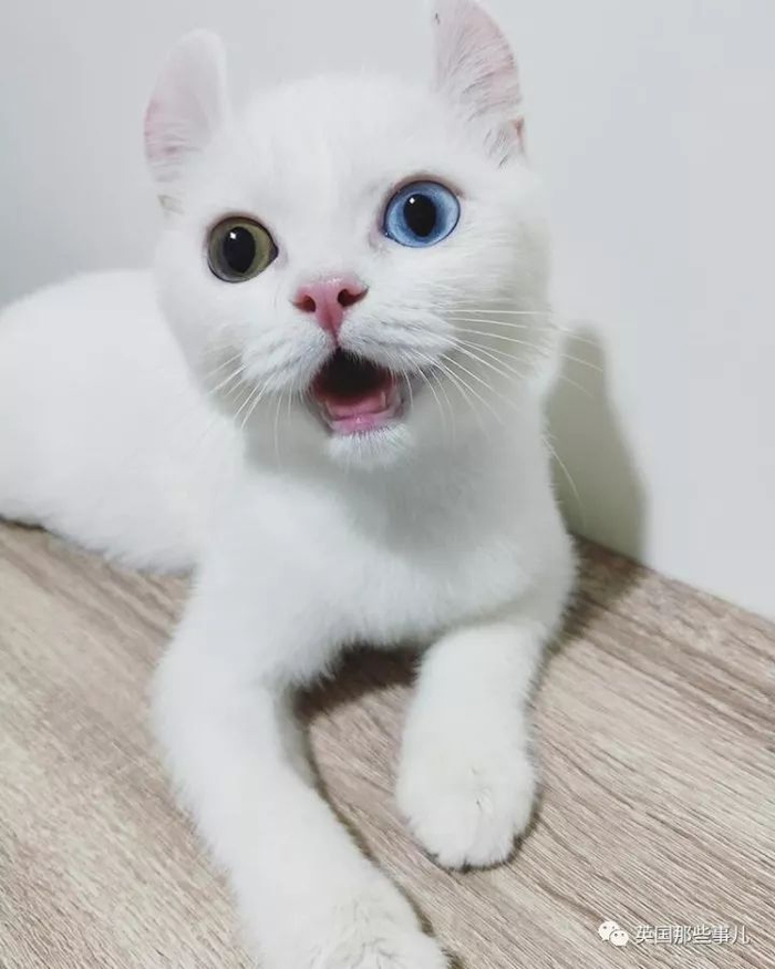 一只异色瞳,有眉毛的小白猫!