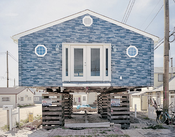 2012年10月,“桑迪”横扫美国东部海岸,纽约是重灾区——30余万栋房屋被摧毁,损失达到了190亿美元(约合人民币1260亿元)。2013年拍摄的照片显示,灾难过后,海滨地区的房屋被抬高了至少10英尺(约3米),而这些临时地基是由木柱组成的,柱子之间留出了很多空间,以供未来搭建更稳固的地基。