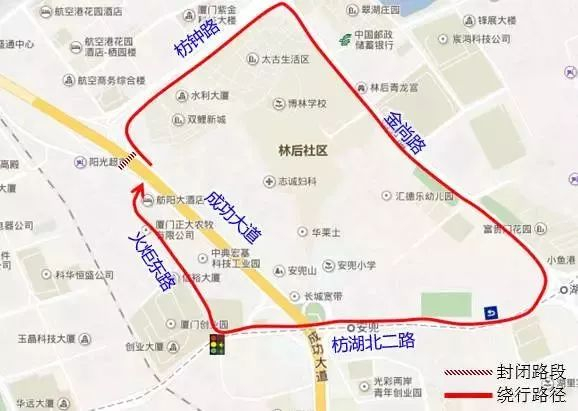 机动车可通过枋钟路-金尚路绕行或禾山路-火炬东路-火炬路绕行。