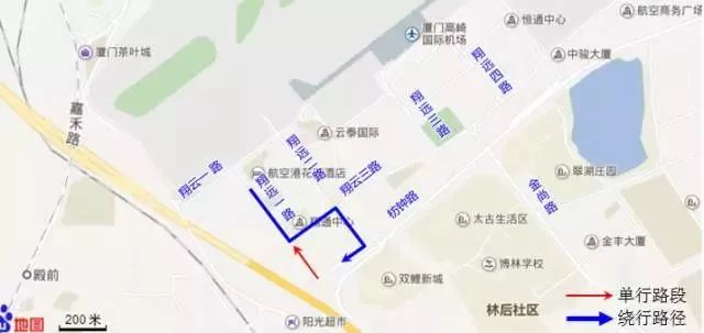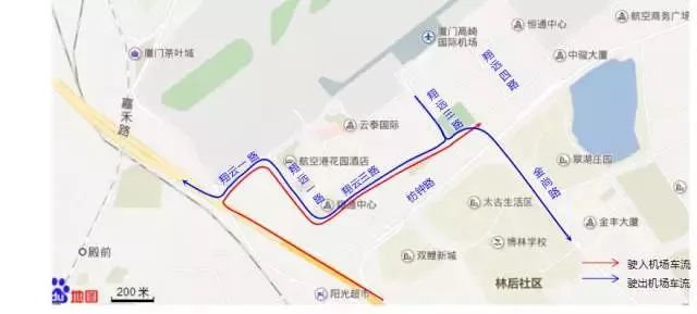 ●T3航站楼往成功大道演武大桥方向车辆可往金尚路绕行或通过机场内部道路绕行至嘉禾路。