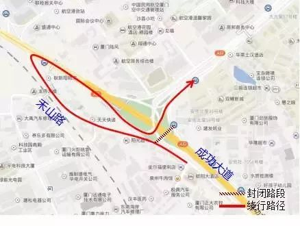 2017年11月19日至2018年2月10日,成功大道(枋湖北二路至枋钟路段)西侧禾山路辅道封闭施工,禁止机动车通行,保留人行道。