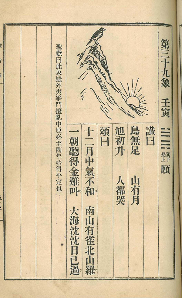 从图文的细节来判断,《推背图》也不会是唐朝的作品。第39象预言“日本侵华”,“旭初升,人都哭”,比喻日本军国主义势力强大,中国人都在哭泣。此乃典型的民国思维,只有民国人才会把“旭日”比作日本;在古代,日代表帝王,就像成语“天无二日”说的那样。