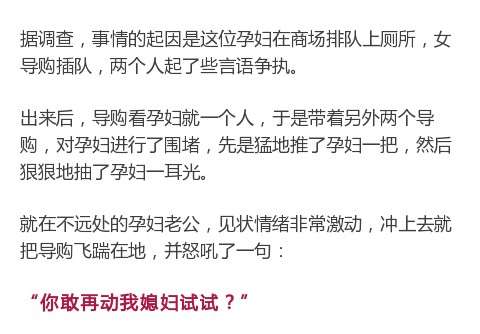 女导购因插队掌掴怀孕顾客 后遭顾客丈夫飞踹