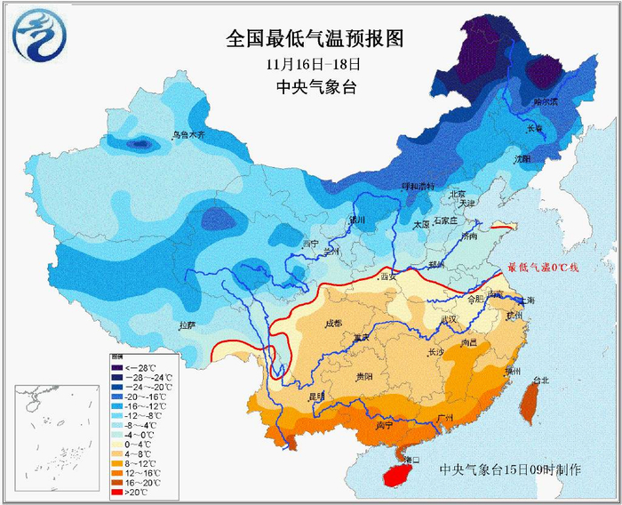 19日凌晨,地面最低温度0℃线将南压至沿淮一带地区,河南中南部至苏皖沿淮地区将出现初霜冻。中东部大部地区有4~6级偏北风,阵风可达7~8级,江河湖面的风力有5~7级,阵风可达8~9级,东部和南部海区有7~9级大风。
