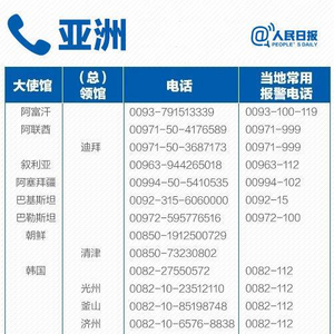 出国在外安全第一!150个主要国家和地区应急电话,收藏备用!