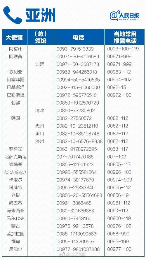 出国在外,无论学习、工作还是旅游,安全第一!150个主要国家和地区应急电话↓转存,关键时刻有用!