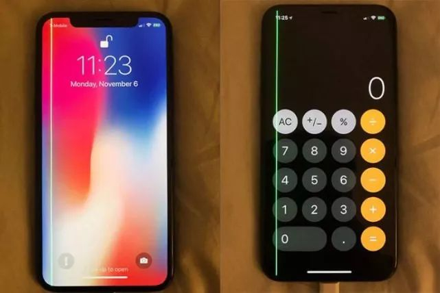据CNET等美国科技新闻网站报道,连日来,用户在推特、Reddit和各种网络论坛上报告了这一故障,据称,在iPhone X屏幕的两侧将会出现一条十分刺眼的垂直绿色线条,造成了严重的视觉干扰,属于明显的故障。
