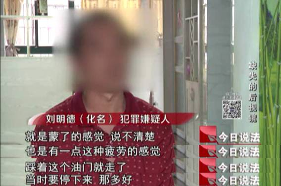 撞人后,刘明德极度恐慌,害怕,他说自己没有减速,直接就逃离了现场。而坐在副驾驶的是刘明德的妻子李燕,她当时正在昏睡中,并不知道丈夫已经闯了大祸。