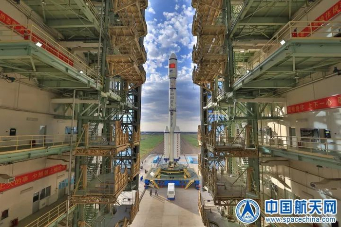 长征二号F运载火箭携天宫二号“出阁”。(摄影:王磊)