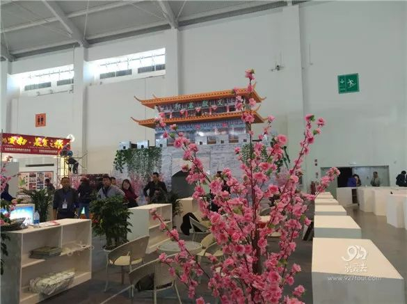 旅游综合馆主要由全省各州市展区组成,各展区的设计各具特色。最吸引眼球的要数昆明和普洱两个展区。昆明展区突出昆明花卉城市特色,一艘鲜花装点的郑和宝船屹立在展区一侧。普洱展区原生态古茶树周边环绕着一个个树皮质感的展位供参展单位和企业放置宣传册和物品。
