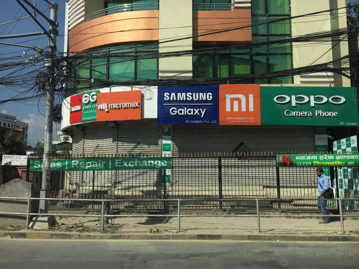 尼泊尔街头随处可见中国品牌的广告。(新华社记者郑昊宁摄)