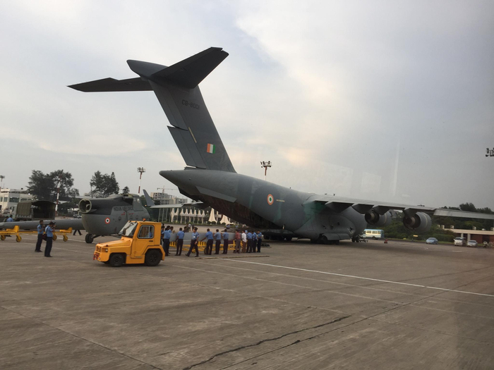 一架印度军机停靠在孟加拉国国际机场。(新华社记者刘赞摄)
