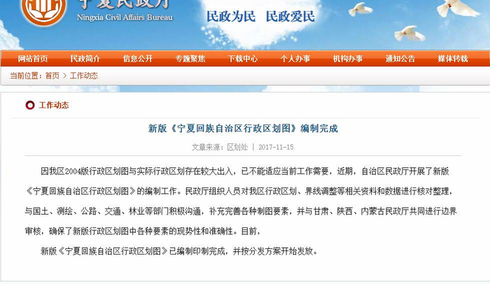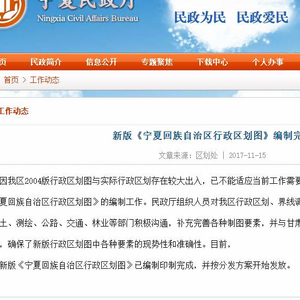 据了解,及时公布行政区划信息、编制行政区划图是《国务院行政区域界线管理条例》赋予民政部门的职责。宁夏现有的行政区划图为2004年7月出版印刷,至今已13年。“13年来宁夏行政区划不断调整,尤其是先后于2008年、2011年对个别县区周边行政区划作了部分调整,2004年编制出版的行政区划图已远远不能适应当前工作的需要。”自治区民政厅相关人员表示,为做好新版宁夏行政区划图和各县(市、区)行政区划图的编制工作,增强区划图的现势性和数据的准确性,行政区划处组织人员重点对我区13年来行政区划、界限调整等相关资料和数据进行核对和整理,在自治区地名委员会标准化中心的大力配合下,运用第二次地名普查成果对各级行政区划名称、行政村名称以及其他相关资料进行了收集和整理。同时,与自治区国土、测绘、林业等部门沟通,充实和完善制图所需的各种要素。“还与我区相邻的甘肃、陕西和内蒙古民政厅联系,将宁夏行政区划大样图寄给他们,请他们结合本省(区)与我区接壤的界限和图中所涉及的要素进行审核,确保新版行政区划图中要素的权威性。”