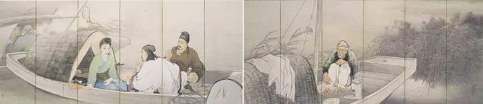(图4)桥本関雪,《琵琶行》,1910年作,六折屏风一对,川村纪念美术馆。