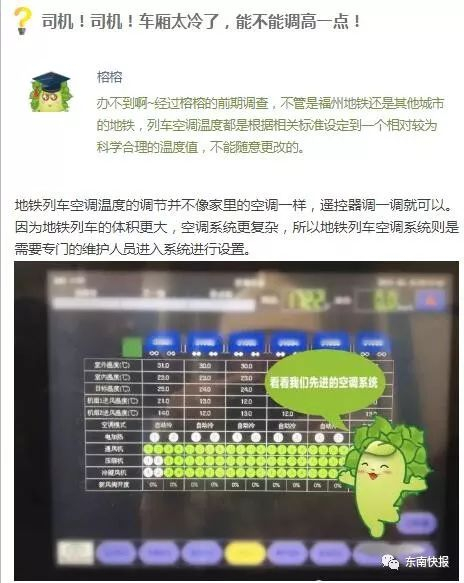 近期,福州的气温有所转凉,市民出行乘坐地铁时,地铁列车的空调温度也成为了小伙伴们的关注点。很多人都已经关上家里的空调享受大自然的徐徐清风,但当你走进地铁车厢时会发现,车厢内的空调一年四季都处于运转的状态,这是为什么呢?下面就给你揭开地铁列车空调的真相吧!