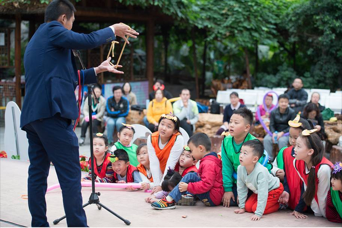 本次活动共分为三个阶段,首先主持人通过介绍环境污染的危害引入寻宝游戏环节的主题“拯救森林,做保护环境的小卫士”。然后寻宝活动以分队方式进行,红队、绿队和橙队的小朋友积极寻找带有特殊标志的宝物,各个兴趣高涨,热情参与,收获颇丰。寻宝活动不仅清理了“森林”垃圾,给森林带来焕然一新的面貌,同时还唤醒了森林魔法师。最后森林魔法师陆续带来了趣味搞笑的小丑表演,精湛绝伦的古彩戏法,还有令人称奇的近景魔术,现场的魔术教学更让小朋友参与其中,真切体会魔术的神奇,将现场气氛带入了另一个高潮。