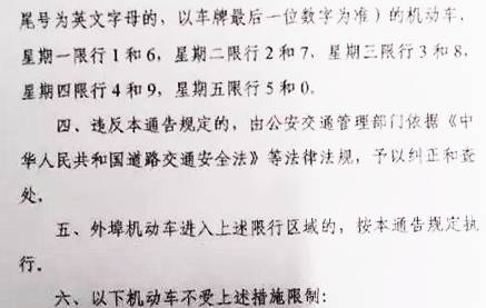 限行规定:每日限行两个车牌(含临时)尾号(若尾号为英文字母的,以车牌最后一位数字为准)的机动车,