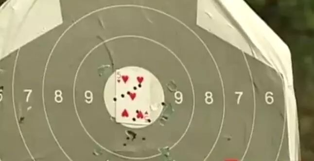 神枪手!500米外连发数抢打在扑克牌上连成斜线