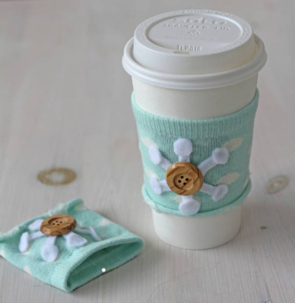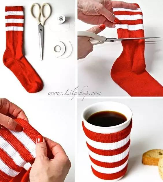 冬天倒热水,杯子太烫手怎么办?把袜子剪下一段套上去,暖暖的很贴心~