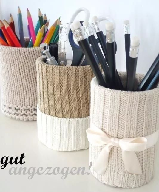 把袜子套在易拉罐或者塑料瓶的外面,变身成一个小清新模样的笔筒,好看又实用。