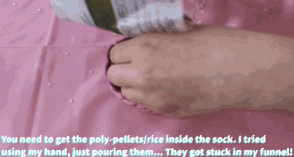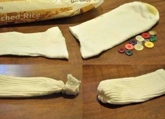 袜子装上填充的颗粒,有专用的填充剂颗粒,也可以放些大米。