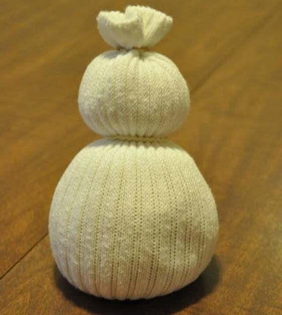 然后分两段塞入棉花绑紧,做出雪人的形状。