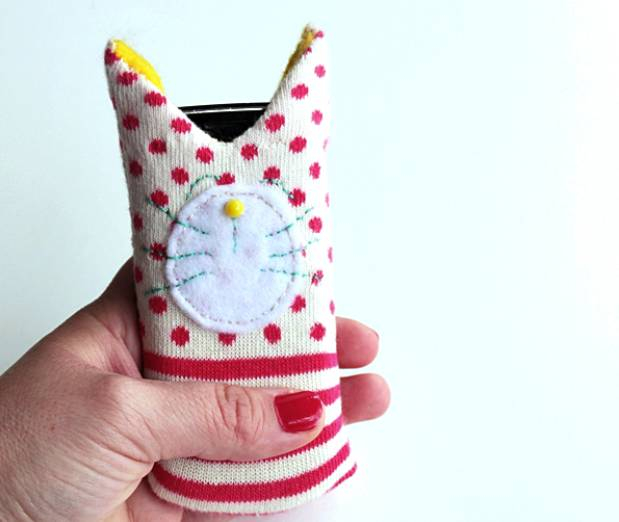 手机冷冰冰,用袜子做一个手机套,拿在手里很温暖,放在包包里都不怕磕磕碰碰了~