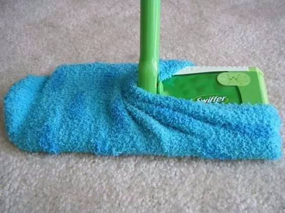把旧袜子套在拖把上,就是一个好用的拖把套,拖地沾灰十分好用!