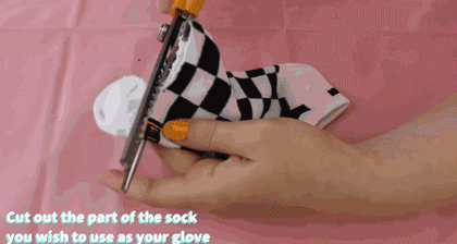首先把袜子的首尾两端剪掉,留下中间的部分。