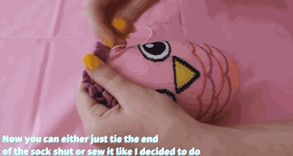 把袜子反过来,边缘折叠一小圈,然后用针线缝合。