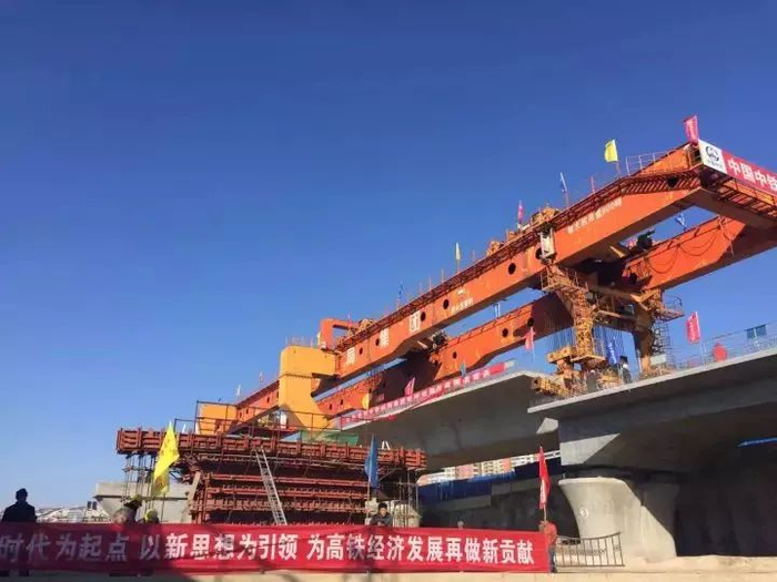 2017年11月15日,随着张呼高铁最后一孔梁安全就位,内蒙古首条高铁――新建张家口至呼和浩特高速铁路架梁工程全部顺利完成,为全线铺轨和按期开通奠定了基础。张呼高铁自2014年全线开工建设以来,共架设箱梁3979孔,每孔箱梁重达715吨。