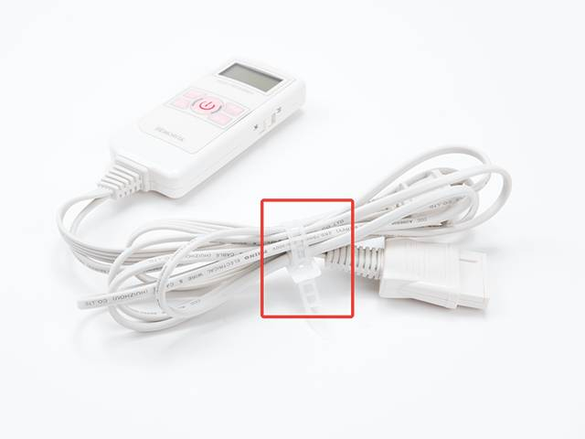 这款电热毯的左右两部分,是各自独立的发热线圈,它们的控制器插口在电热毯中间。