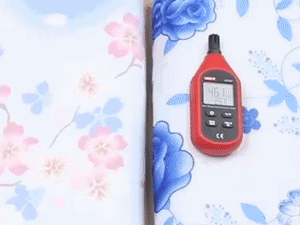 小编把森田电热毯(左)和普通电热毯(右)摆在一起,都开到最大档,然后分别测试它们的湿度。
