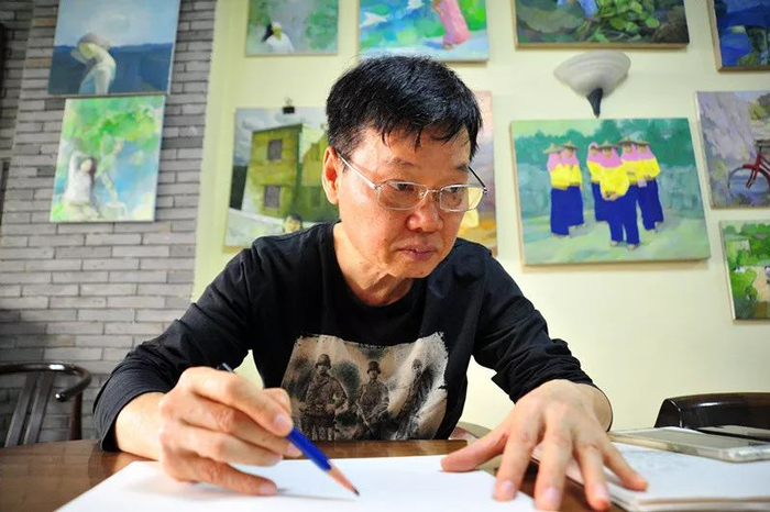 绘画中的陈汉翔。