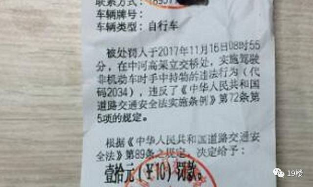 虽然10块钱并不多,但是楼主似乎并不知道骑车撑伞是违法行为……