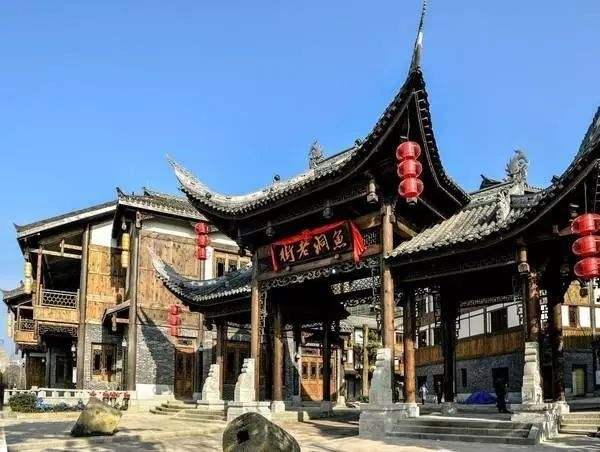 街道以青石铺设,街面3至5米宽,建筑为穿逗式木结构,中为骑廊式过街亭建筑,整条老街雨不湿鞋、日不能晒、冬暖夏凉,还能品尝到地道的酸菜鱼哟!