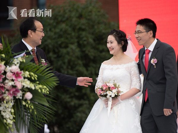 今天下午,华东政法大学在松江校区举行“以爱之名,情定华政”建校65周年大型集体婚礼,这是学校第一次举办大型集体婚礼。